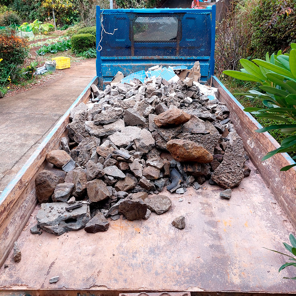 かなりの石やモルタルなどが