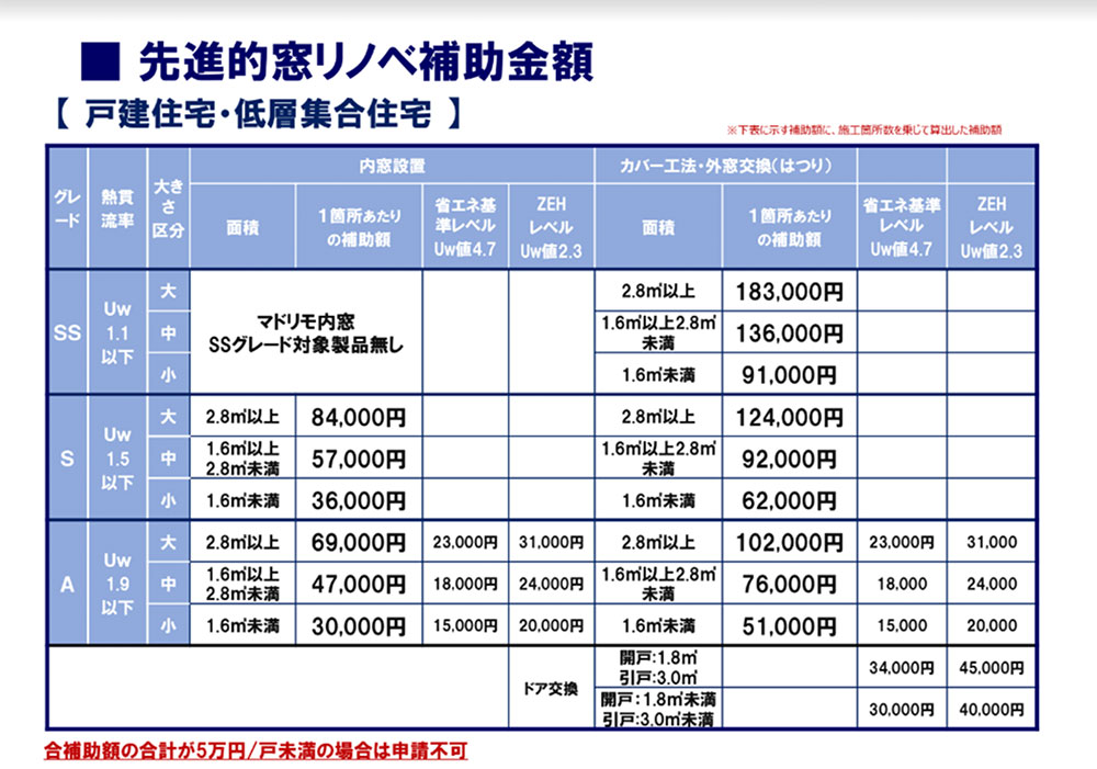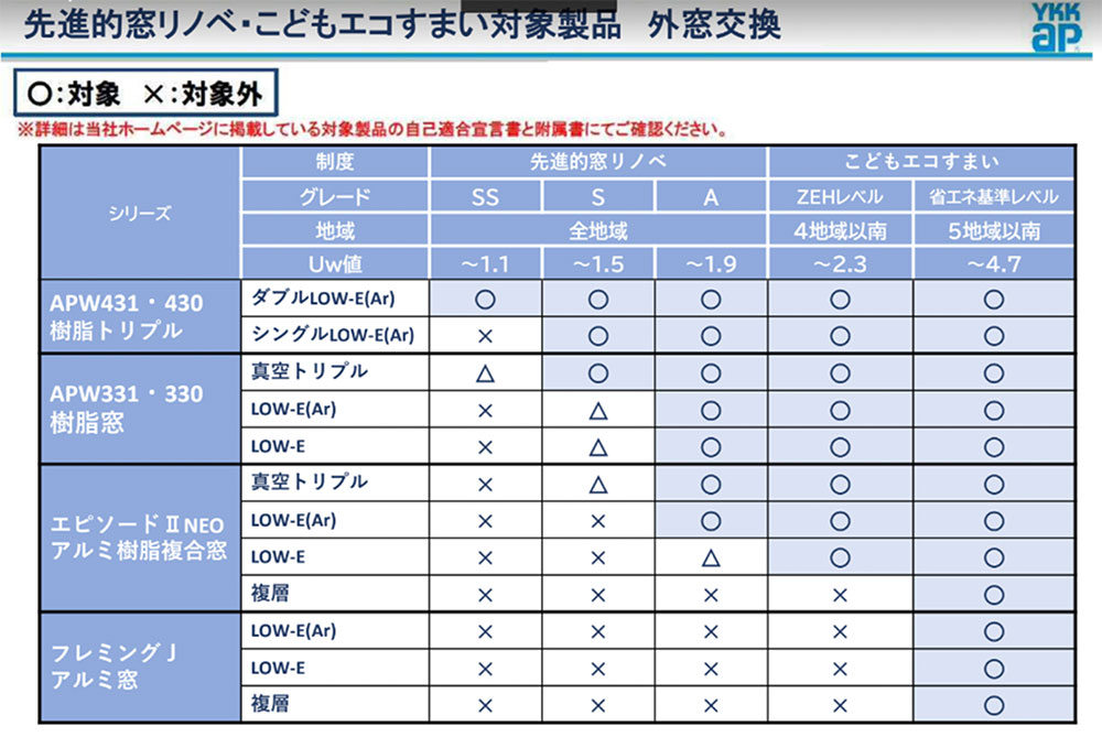 内窓の場合、SSグレードは対象はならない