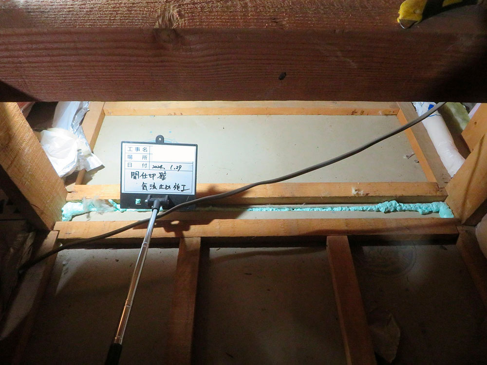 間仕切壁の気流止め。